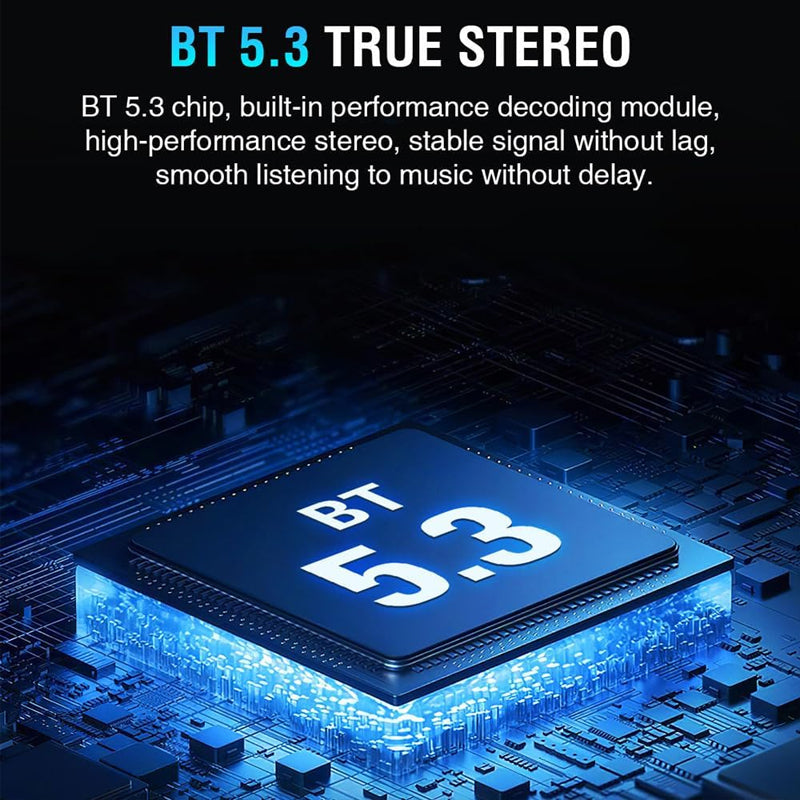 Stream music wirelessly with Bluetooth 5.3 for stable, lag-free, high-quality stereo sound. Connect instantly and enjoy concert-like vibes on the go!