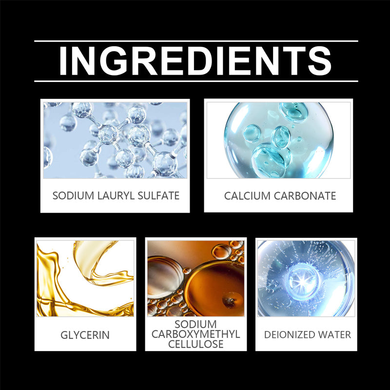 • Ingredients: Deionized water, calcium carbonate, sodium lauryl sulfate, sodium carboxymethylcellulose, glycerin