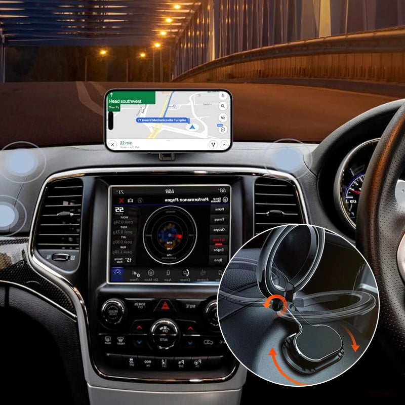 Powerful magnetic grip keeps your phone securely in place for safer driving.