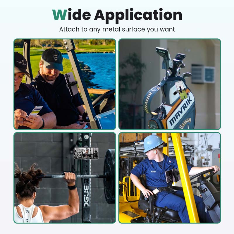 - PORTABILITY - With its sleek, compact design, this magnetic phone holder effortlessly attaches and detaches from any metal surface, allowing you to seamlessly transition from the golf course to work or the gym.