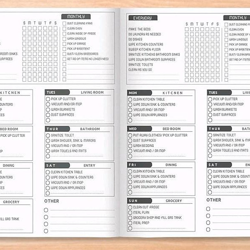 • Contents: daily, weekly, monthly chore lists