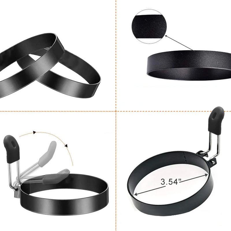 🍳Feel a Professional Chef: These Deluxe pancake/egg rings measure 3.54"/ 9cm in diameter. Make breakfast a special occasion when you wanna cook round eggs with these handy gadgets.