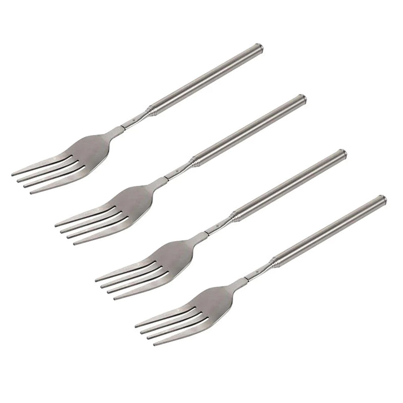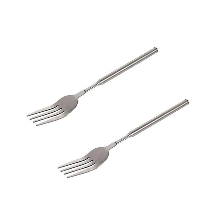 Multifunksjonell: Teleskopfunksjonen tillater presis kontroll, noe som gjør forlengelsesgaffelen for spising egnet for ulike matvarer, inkludert frukt, desserter og grillet kjøtt.