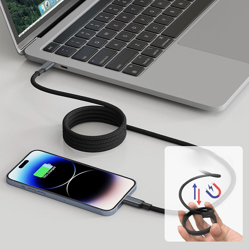 - MAGNETIC CABLE - This unique new charging cable is a cord that's filled with little magnets that keep it super organized and tidy.