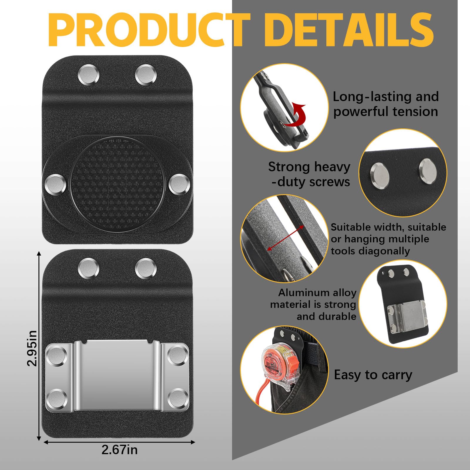 • Wide placement capacity: The tool belt clip is designed to accommodate a wide range of tools, such as hammer, pliers, screws, nails, pipes and more, improving efficiency and accessibility during work.