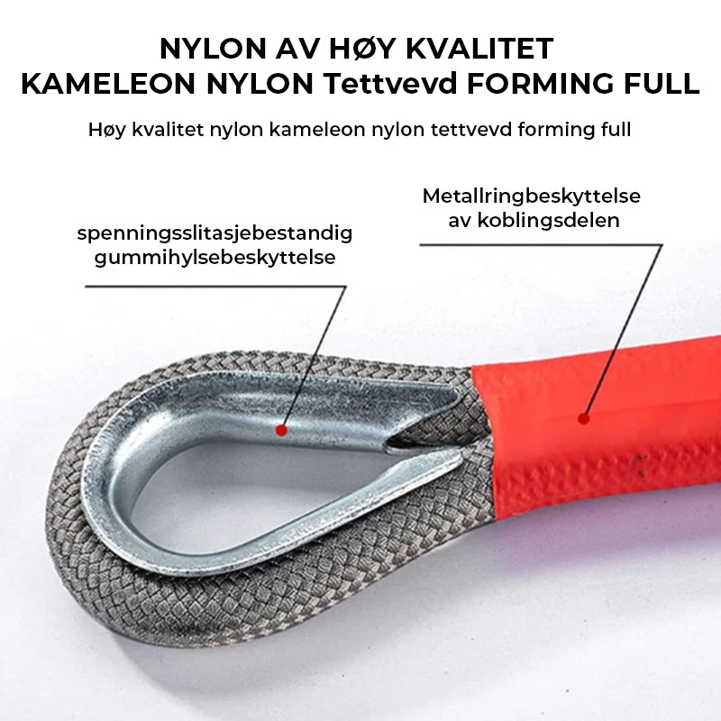 🚘 【Høystyrke og stor forlengelse】Forlengelsen av nylon vil effektivt overføre kinetisk energi fra det assisterende kjøretøyet til det fastkjørte kjøretøyet. Kninetisk tau strekker seg opp til 30%, det reduserer støtbelastningen kraftig