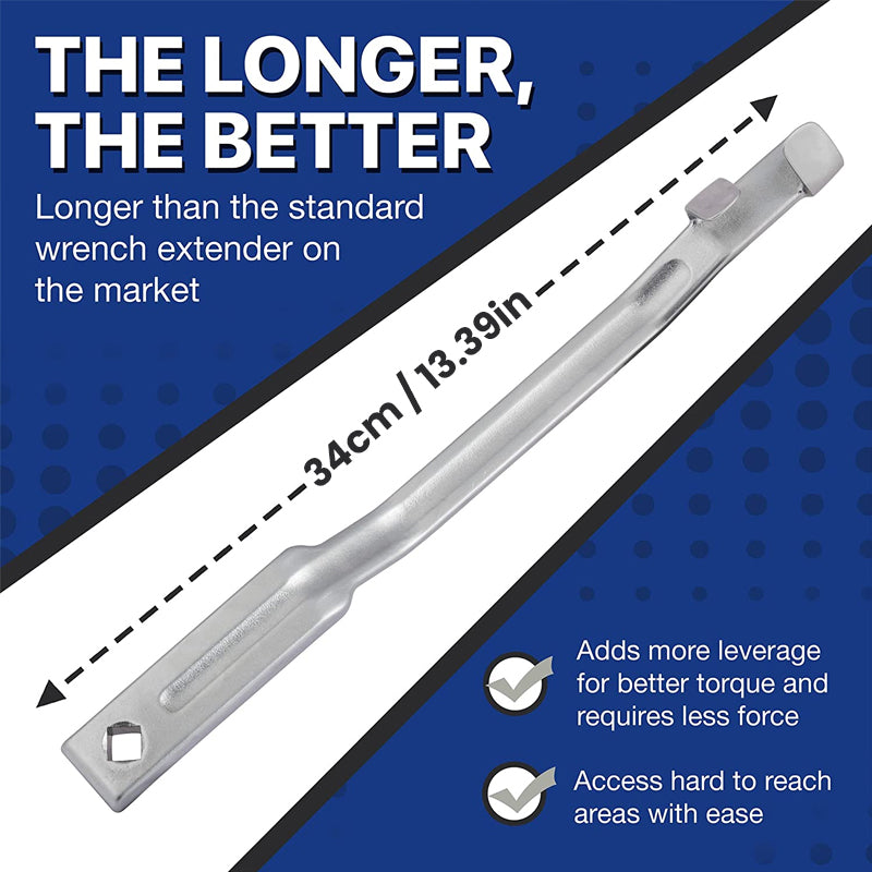 This wrench extender tool bar increases the length of the wrench and torque, allowing for easier work and improved efficiency.
