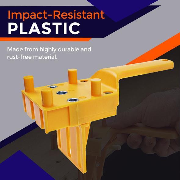 The wood dowel jig is an improved version that’s adaptable to 6mm, 8mm, and 10mm wood doweling for making accurate sizes of holes. It is also made of top standard plastic and metal to ensure prolonged use and resistant to damage.