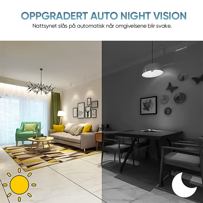 - 1080P FULL HD - Høydefinisjonsobjektivet kan gi deg klare 1080P full HD-videoopptak, slik at du tydelig kan se og overvåke hjemmesituasjonen når du er ute.