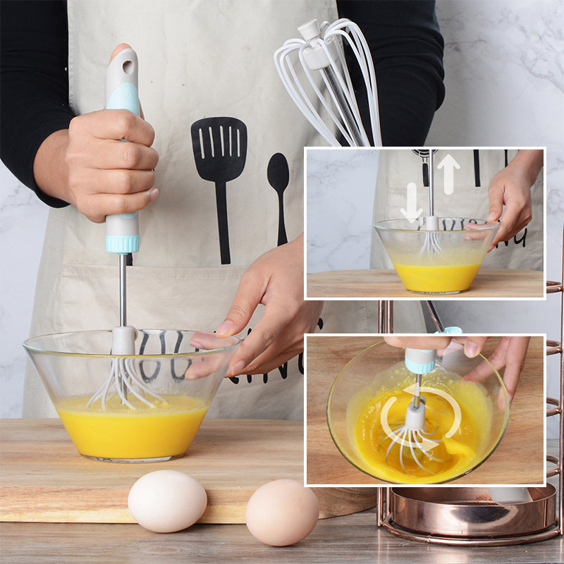 - 🥚 Built-in spring, no need to plug in, gently press to stir evenly, semi-automatic design, quiet and silent, fast, labor-saving and worry-free