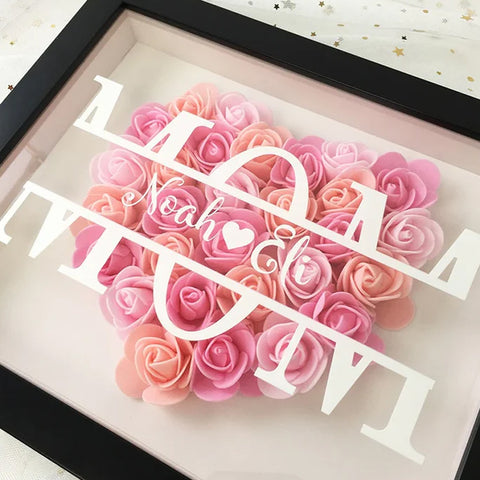 - Each flower is individually hand rolled from cardstock. The frame has hooks on the back so it can be hung on the wall or placed on a shelf. Our beautiful handmade hearts are hand rolled and packaged in boxes.