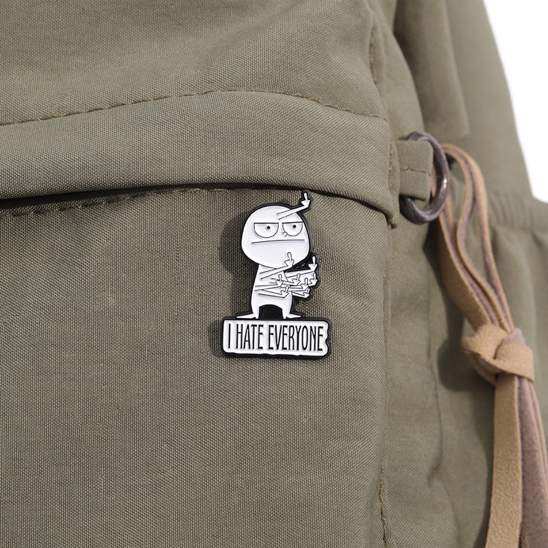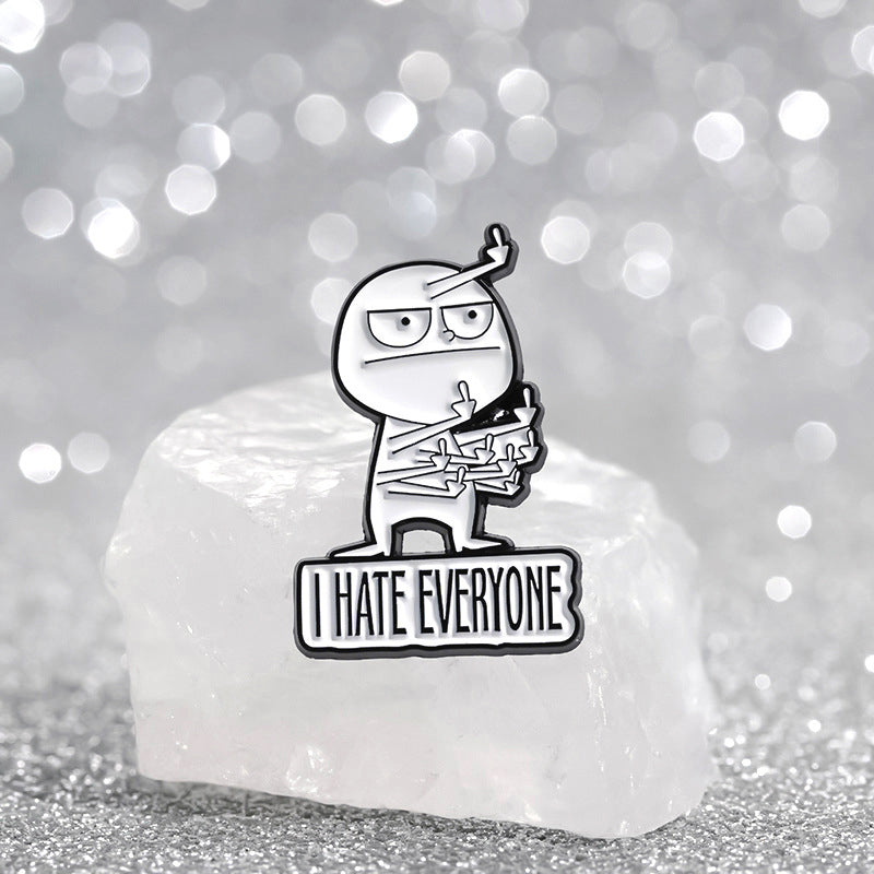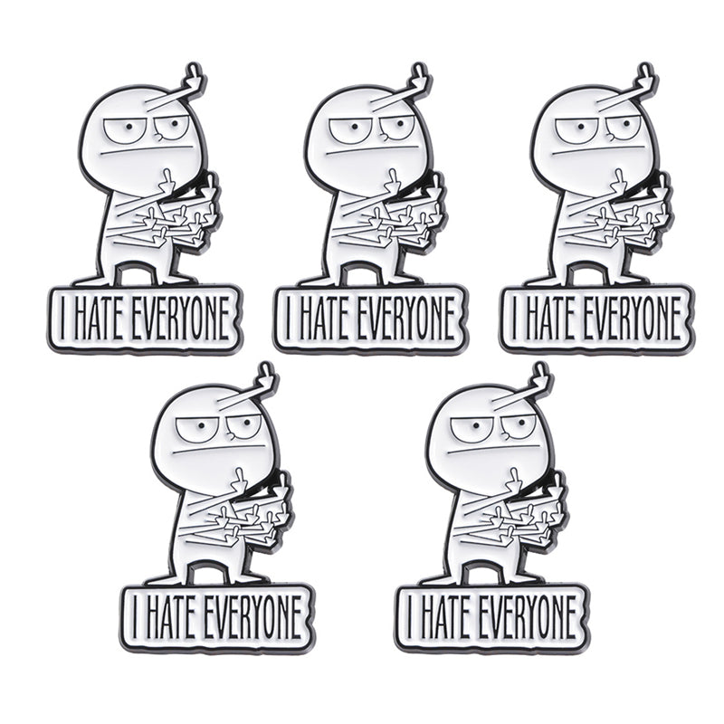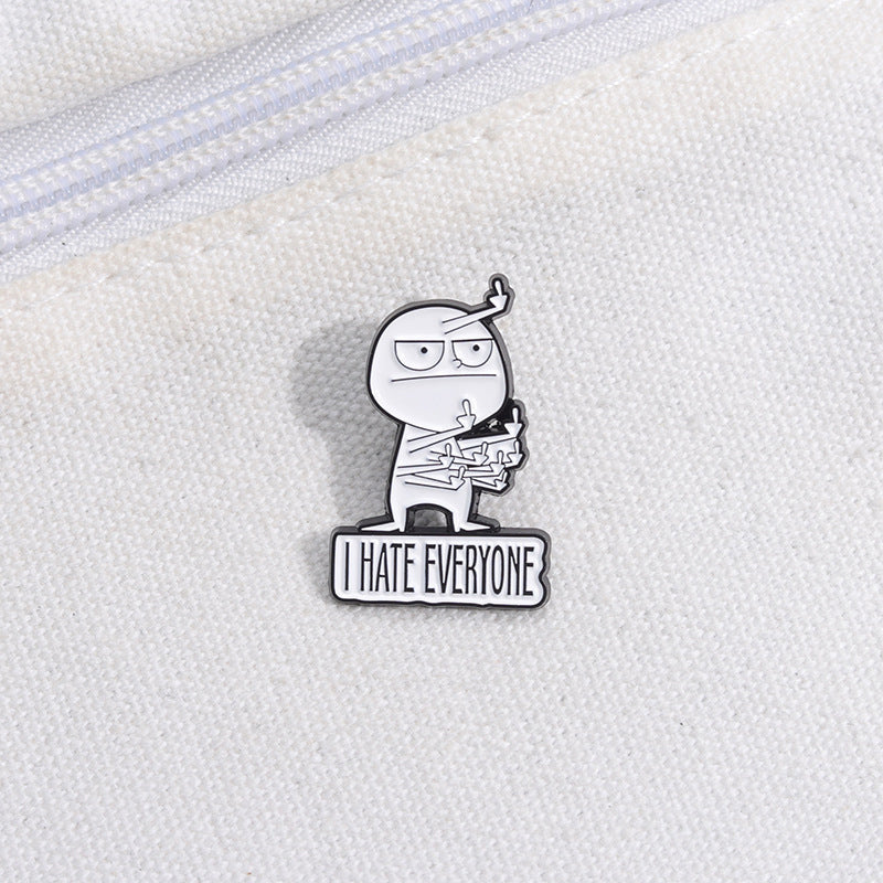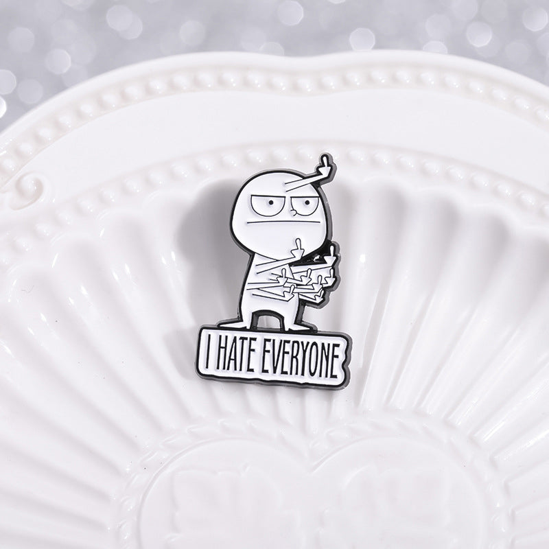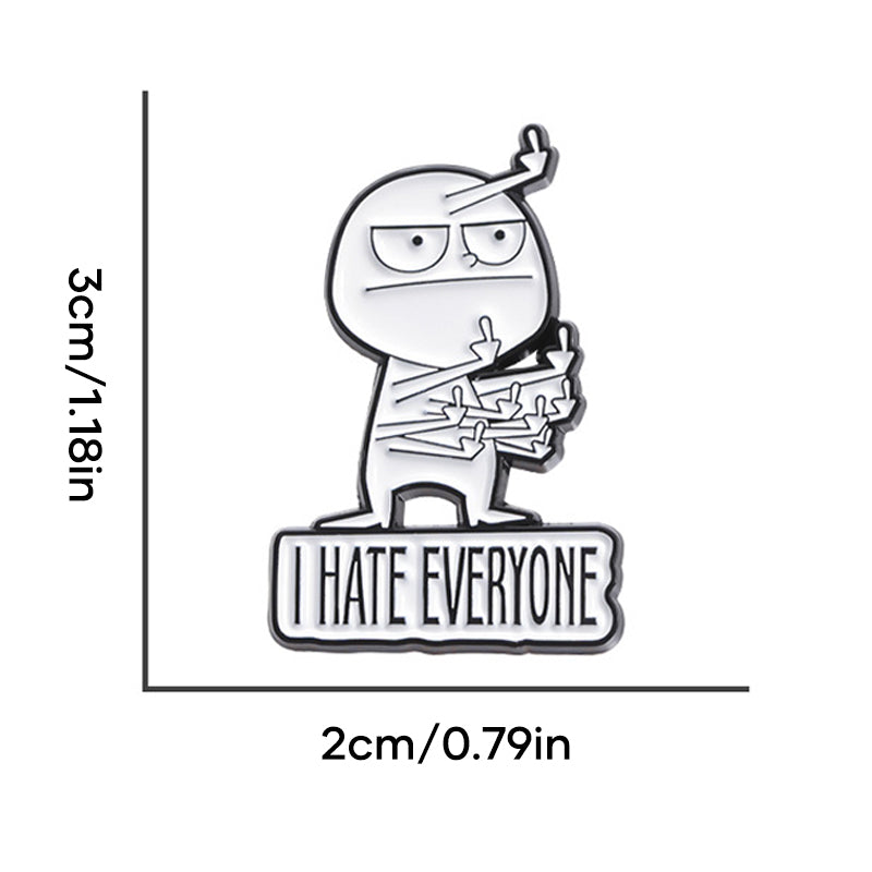 š¤£This hilarious brooch is a masterpiece! It's a tiny person holding up his middle finger and yelling, "I hate everyone!"