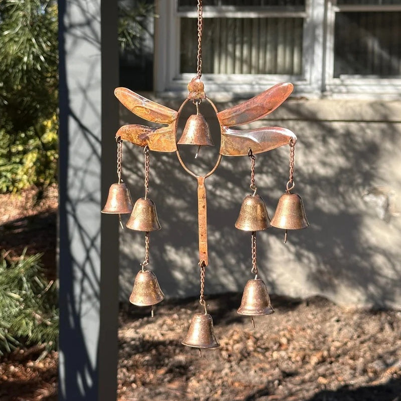 This dragonfly wind chime features eight bells that ring effortlessly in even the lightest of breezes, bringing both beauty and melody to your garden.