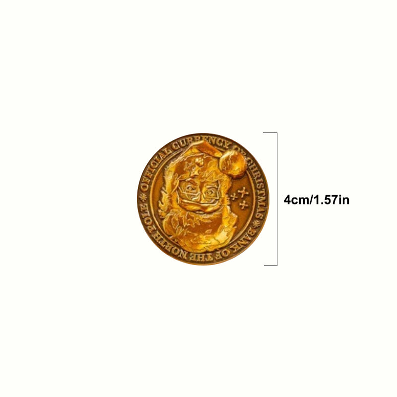 Nestled within this captivating pouch are two Polar Pennies, crafted from solid metal and finished in a lustrous antique gold. Each coin, measuring a generous 4cm in diameter, bears the mark of the North Pole, a testament to the enchantment that resides there.