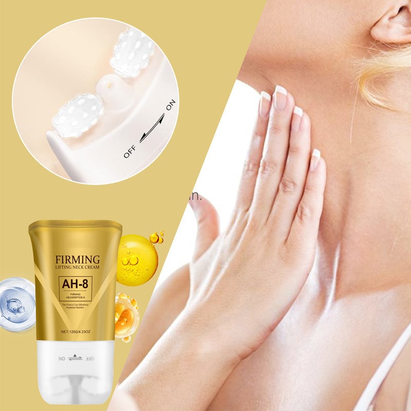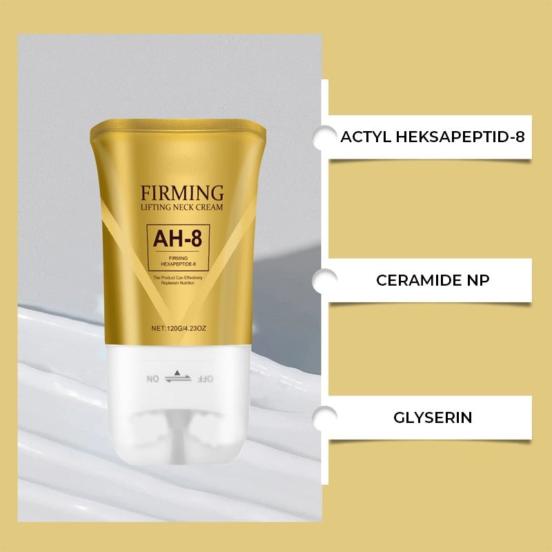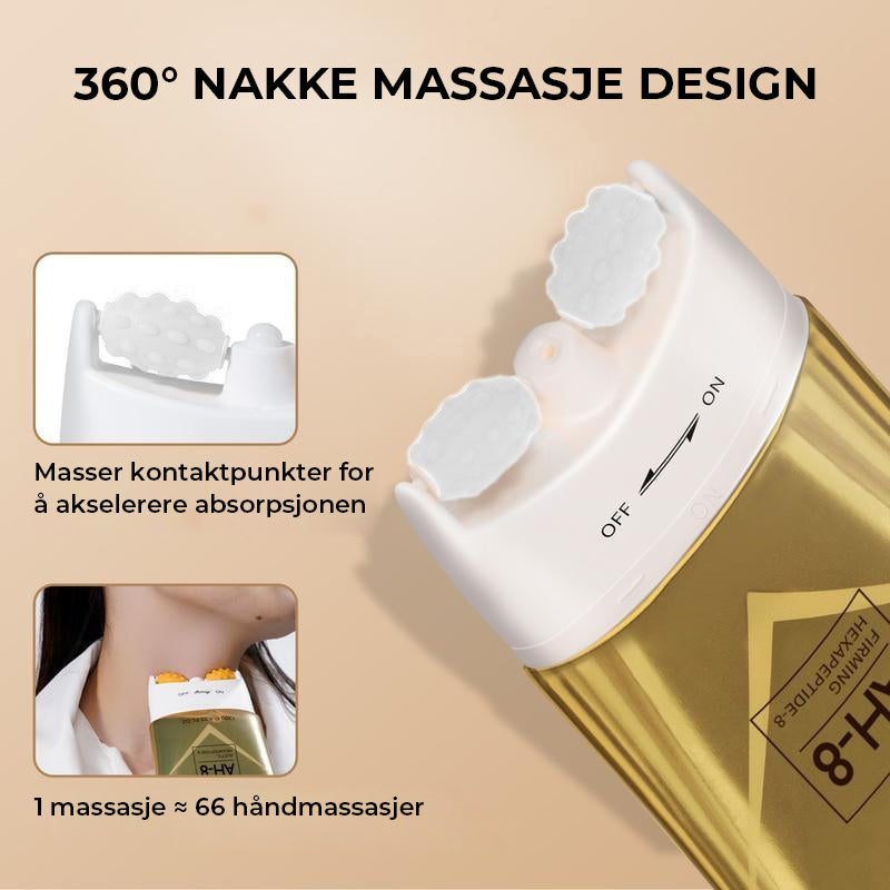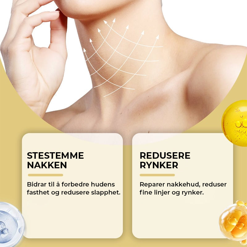 Vår rullende halskrem er en revolusjonerende hudpleieløsning utviklet for å gi næring, stramme opp og forynge den delikate huden rundt halsen.